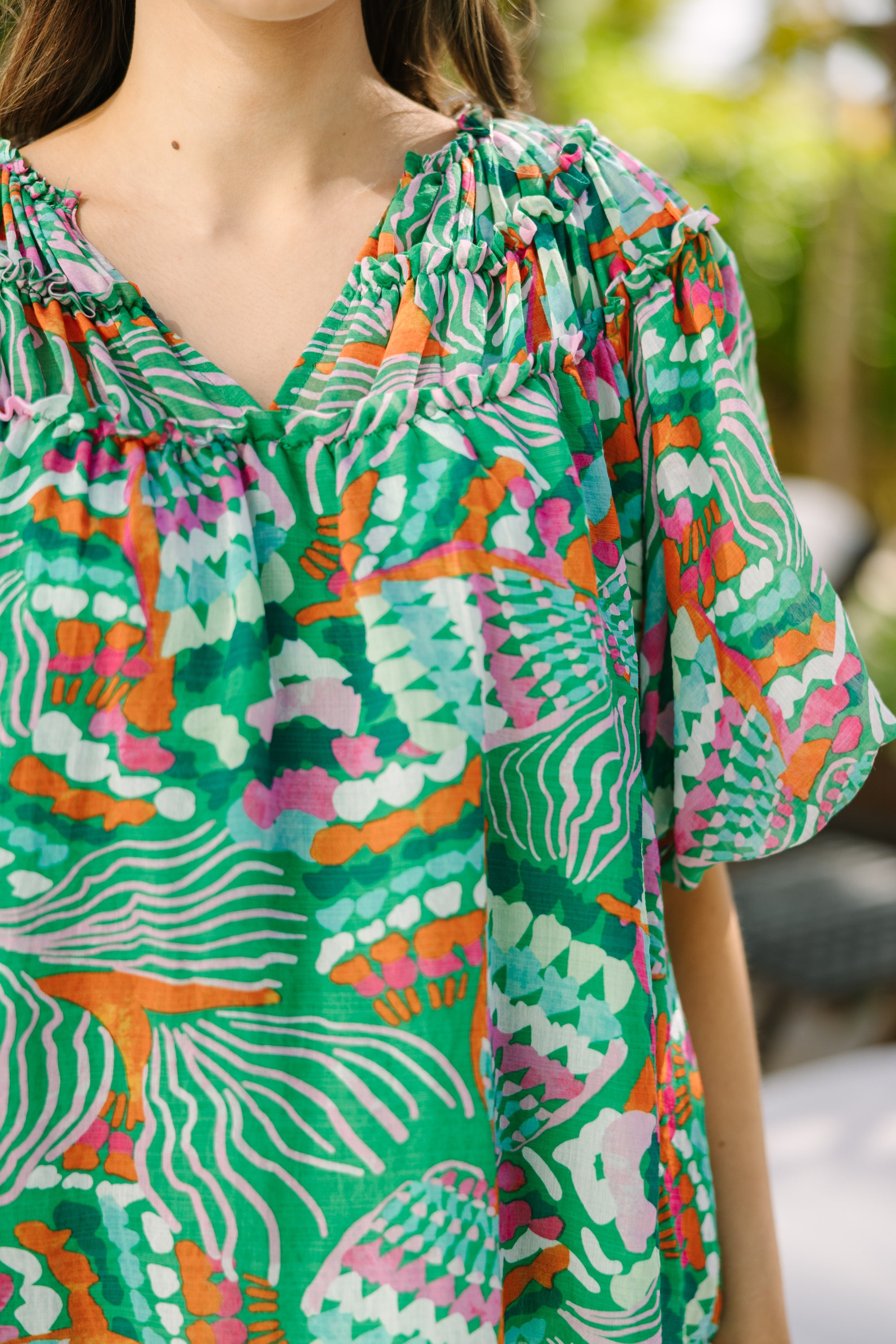 This boldly printed blouse will have you feeling like you can go for anything in this world! And honey, yes, you can and you can look great doing it! This blouse is perfect for work or play and everything in between!