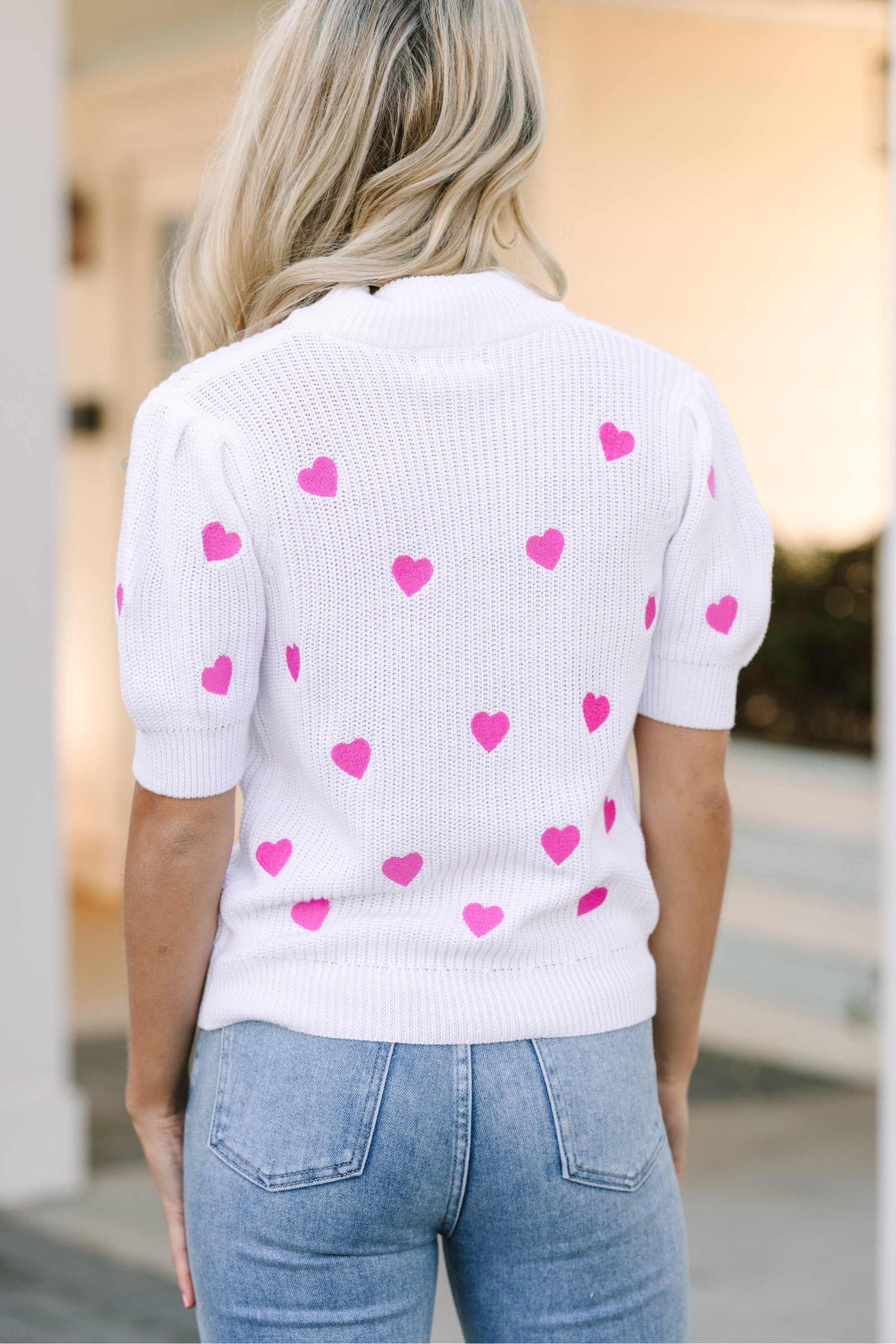 This short sleeve sweater is beyond perfect for Valentine's Day! Or Galentine's Day... whichever one you observe! Those little embroidered hearts on that cozy knit fabric are so cute!